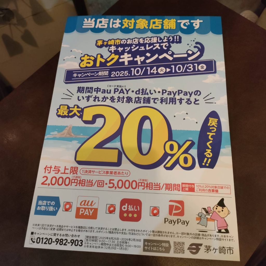 この度、「茅ヶ崎市のお店を応援しよう!! キャッシュレスでおトクキャンペーン」に参加いたします。